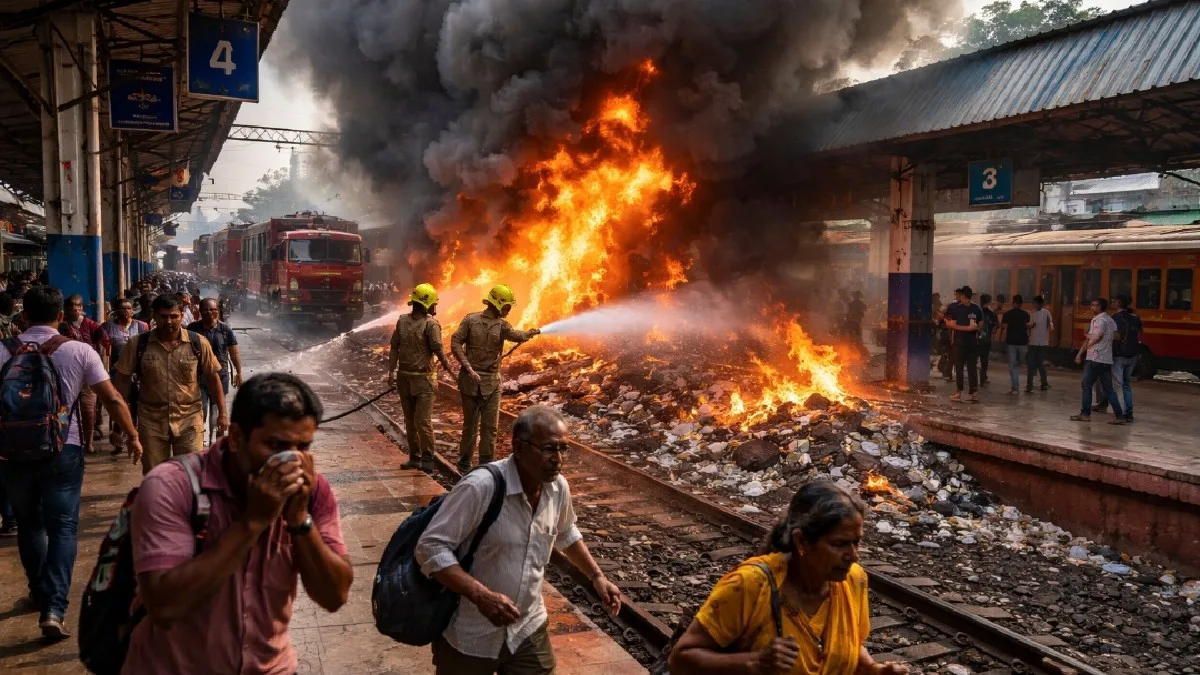 দুপুরের ব্যস্ত সময়। আচমকাই আগুন। উত্তর ২৪ পরগনার মধ্যমগ্রাম রেলওয়ে স্টেশন সংলগ্ন....